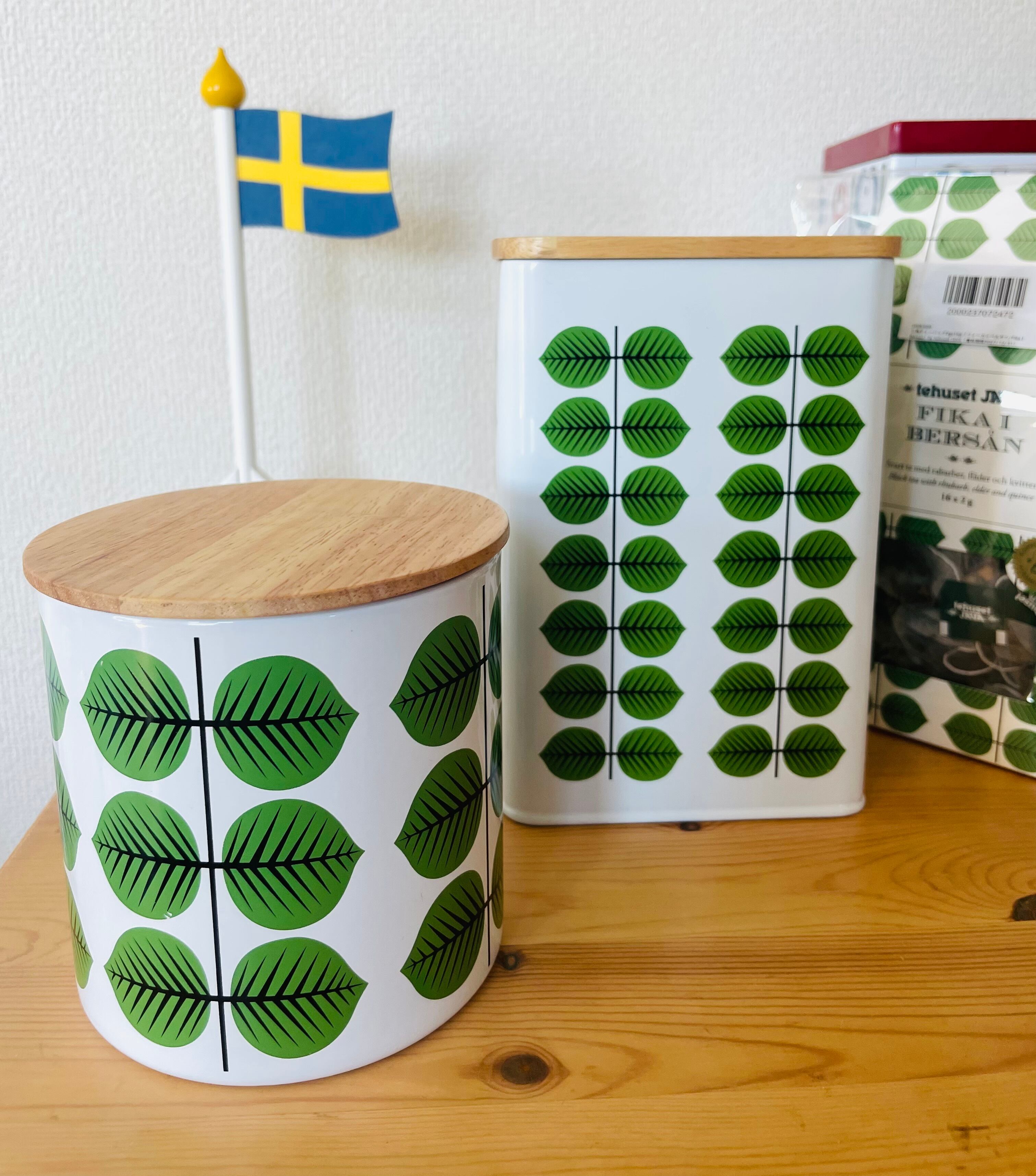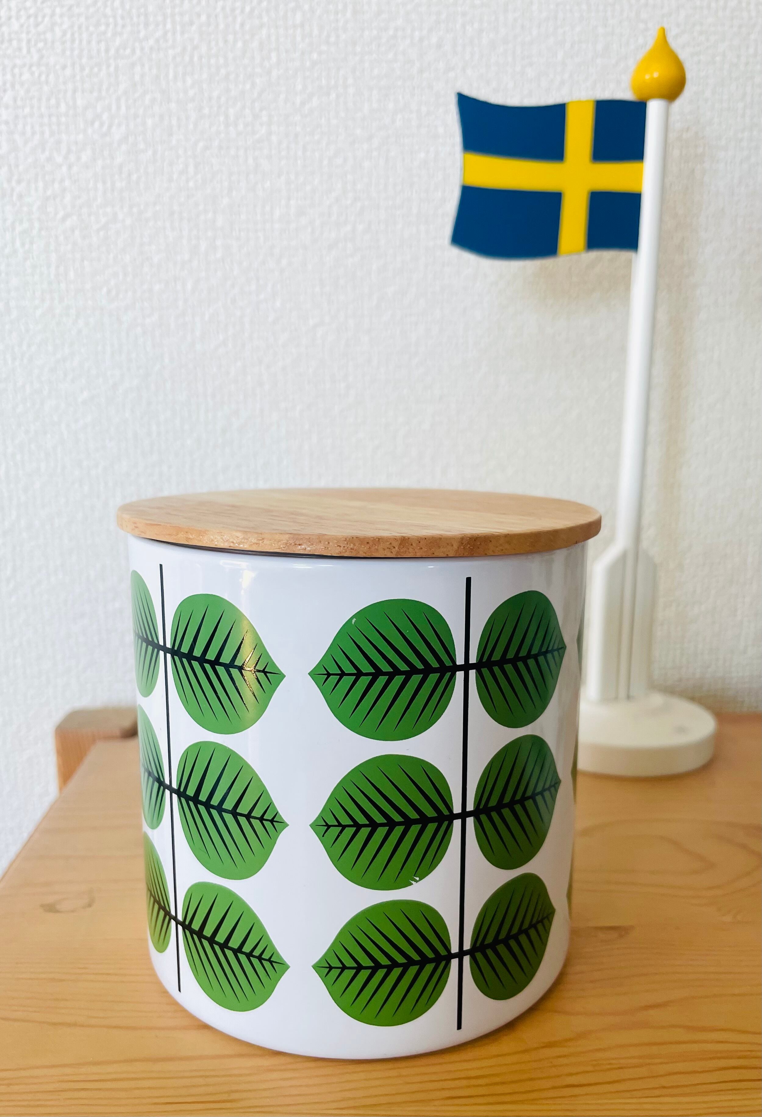 北欧レトロを代表する「ベルサ/Bersa」柄のおしゃれなキャニスター缶です。